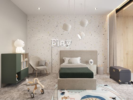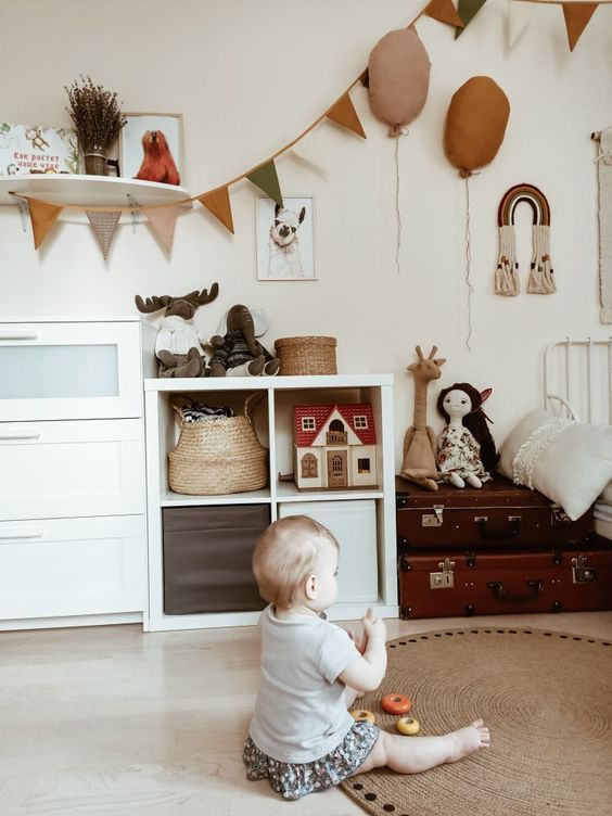 Для скандинавского стиля характерны белые, серые и бежевые цвета. Если интерьер кажется слишком скучным то, с помощью декора или цветовых пятен можно расставить акценты в интерьере. Для этого лучше всего использовать приглушенные или пастельные цвета. Благодаря им ребёнок будет находится в комфортной обстановке, потому что перед его глазами не будет изматывающих темных оттенков или пестрых акцентов. Что касается выбора мебели, то лучше подобрать практичную и компактную мебель из натуральных материалов в светлых оттенках или с естественной фактурой.